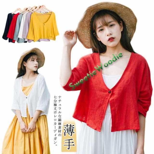 ショートボレロ ボレロカーディガン 7分袖丈 リネン 綿麻 ショートカーディガン ショート丈 冷房対策 UV対策 送料無料 レディース ナチュラルな綿麻素材 マタニティ 5分袖 トップス リネン 羽織りもの 薄手 春夏 涼しい 通気性