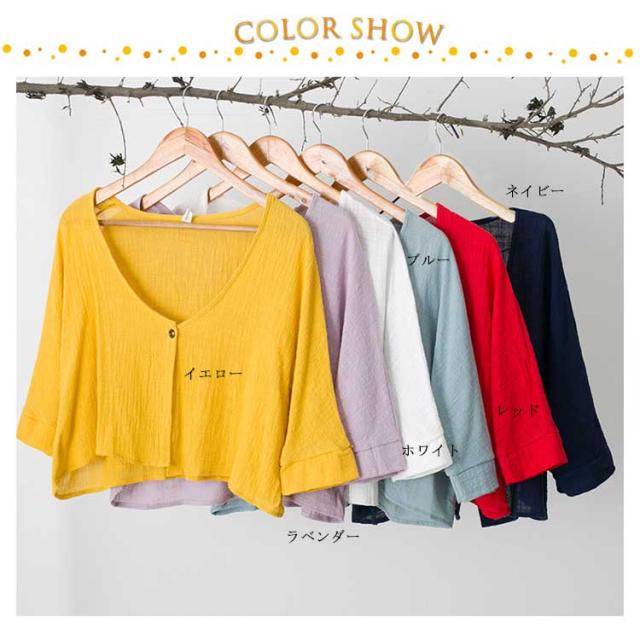 | ナチュラルな綿麻素材の七分袖丈ボレロカーディガン。 綿麻素材がナチュラルで涼し気な雰囲気。通気性が良くて、お肌に優しい◎ 七分袖で気になる二の腕をカバー、UV対策や冷房対策にもおススメ。ゆったりした着心地も快適な一枚。 ショート丈なのでワンピースとも好相性! 薄手の生地なので、バッグなどに収納しての持ち運びにも便利。 マタニティママのトップスとしても◎ショートボレロカーディガン。 | |