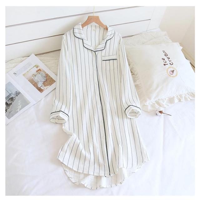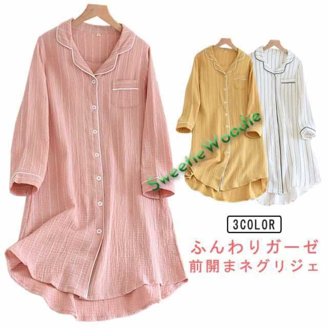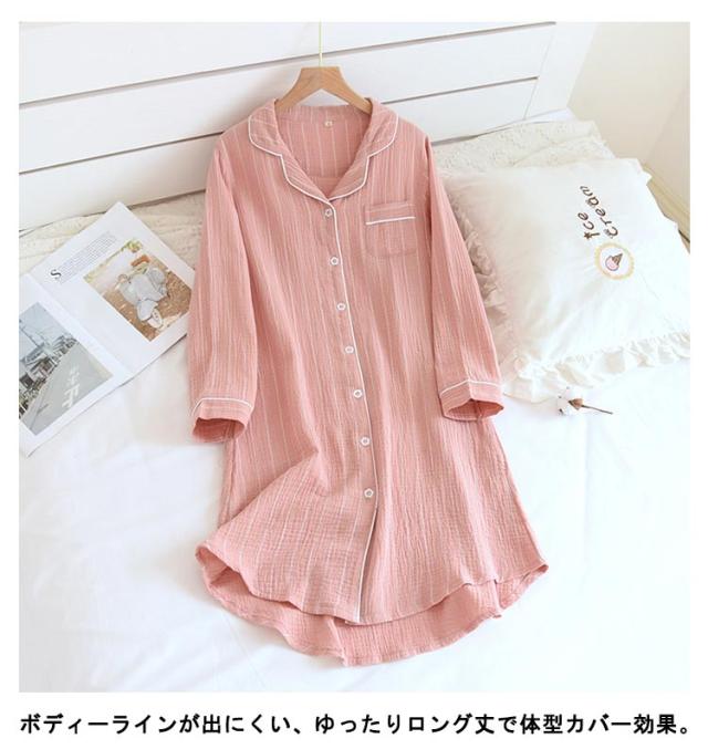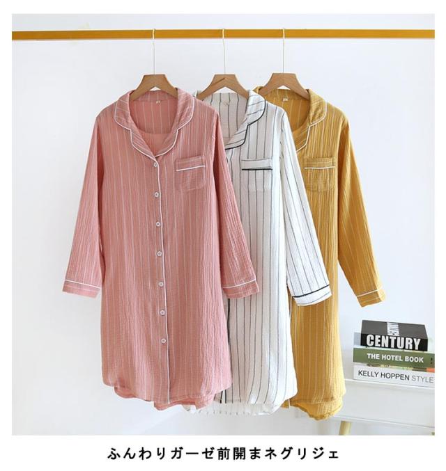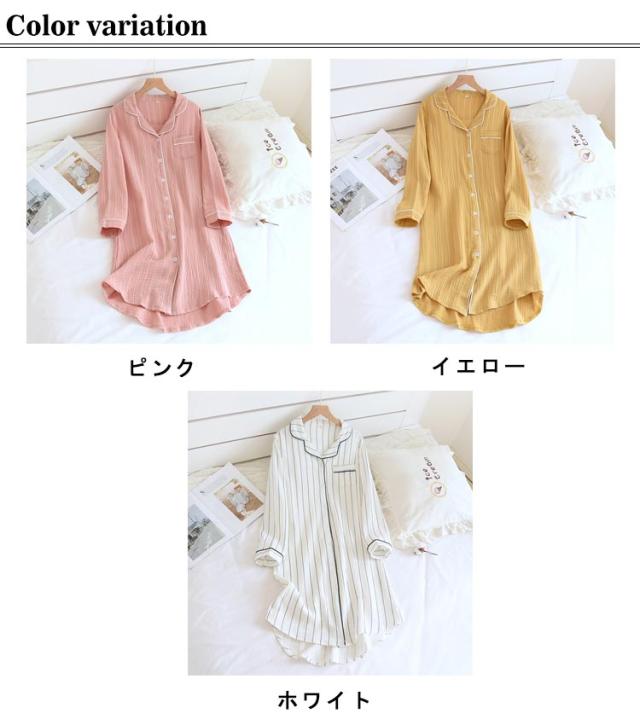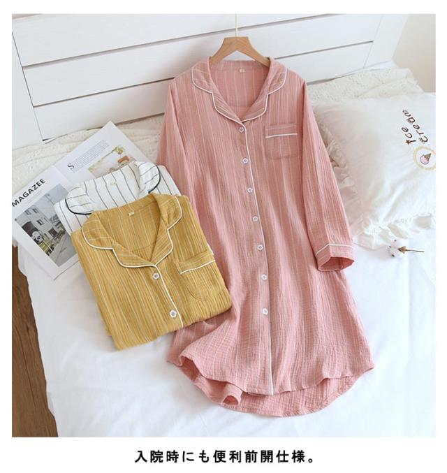 ネグリジェ 前開き 長袖 レディース ワンピース ストライプ マタニティ パジャマ ワンピー 綿 ストレッチ素材 春 秋 ロング丈 産後 入院 ルームウェア 可愛い M L XLサイズ
