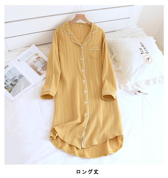 | ふんわりガーゼ前開まネグリジェ 前開きボタン 入院時にも便利前開仕様。 ロング丈 ボディーラインが出にくい、ゆったりロング丈で体型カバー効果。 | |