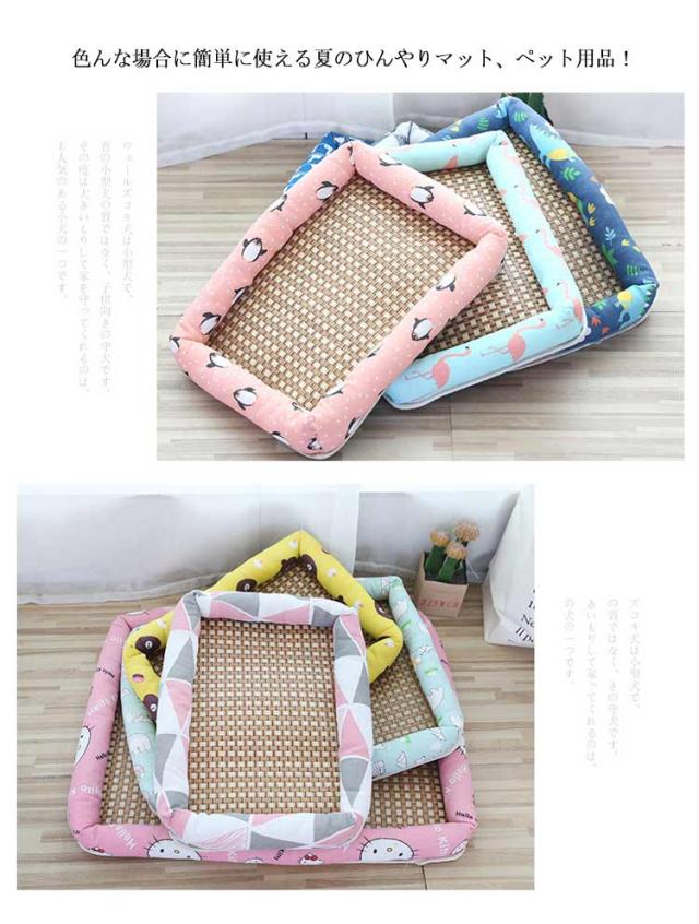 | ひんやりペットベッド 通気性が高いい素材を使用した熱がこもりにくい快適マット 色んな場合に簡単に使える夏のひんやりマット、ペット用品! 中綿はPP綿をふんだんに使用し、ちょうど良い柔らかさのマットにしました。 ひんやりマットを犬のベッドやケージに敷いて使って、ペットに涼しく冷感を与えてクーラーなしで、夏を涼しく過ごさせる用涼感ペットマット! 軽くて、移動も洗濯も楽々です! | |