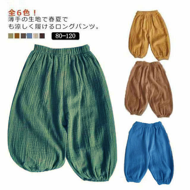 | 全6色!薄手の生地で春夏でも涼しく履けるロングパンツ。 ストレッチ素材だから動きやすいのが嬉しい! ウエストや裾のゴムで楽ちんな履き心地です♪ 擦り傷切り傷の防止、防虫、クーラー対策、紫外線カットなど、色々なシーンでお子様の肌を守ってくれます。 ゆるっとしたシルエットで通園・通学やおでかけにも使える万能ボトムスです。 | |