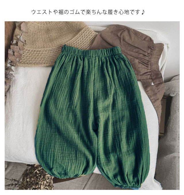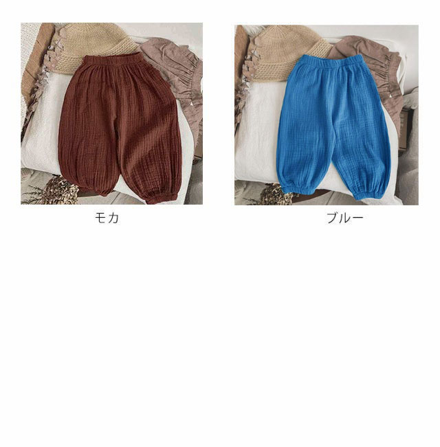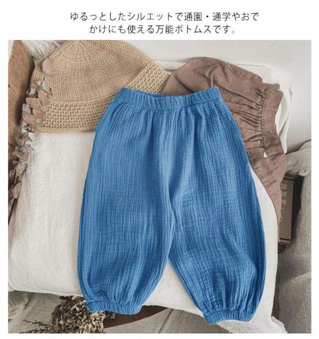 ベビーパンツ シワ感 ベビー ロングパンツ 送料無料 男の子 虫よけ 子供パンツ 長ズボン 子供服 綿 カジュアルパンツ 9分丈 夏 薄手 ゆったり ウエストゴム 裾ゴム 幼稚園 通園 通学 小学生 中学生 シンプル 涼しい 白 黒 90 100 110 120