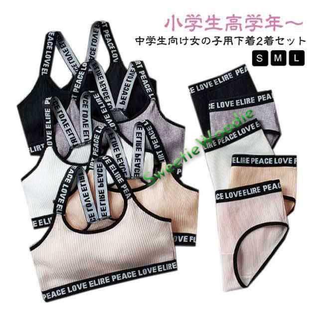 ジュニアブラ 中学生 女の子 英字ロゴ ショーツ ブラジャー セットアップ 子供 下着 肌着 ノーワイヤー インナー キッズブラ ダンスインナー カップ付き スポーツブラ ハーフトップ シンプル ブラトップ 小学生 高学年 ブラジャー ファーストブラ ダンス かわいい 送料無料