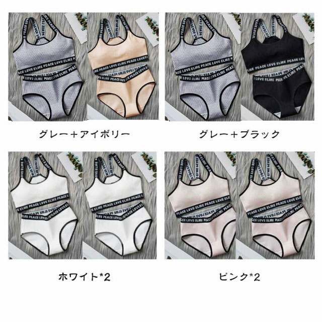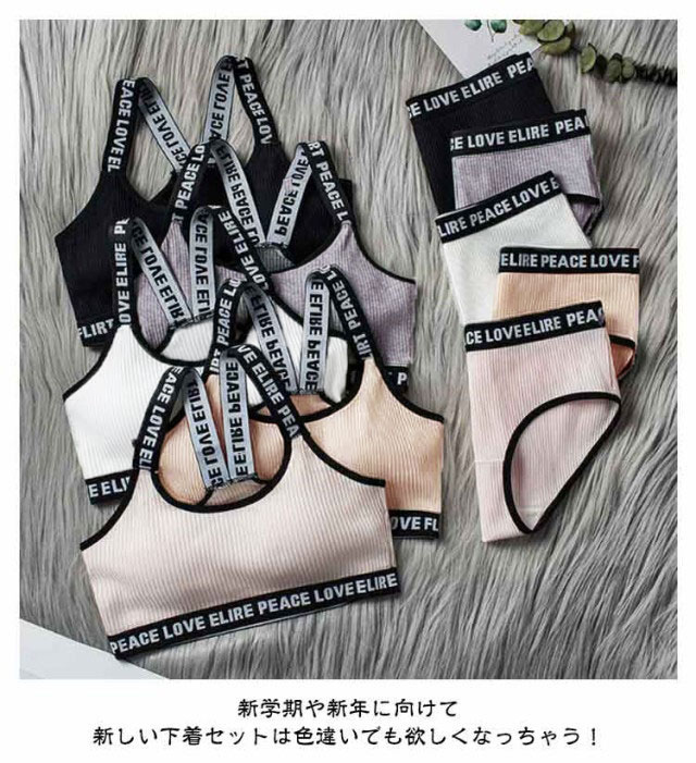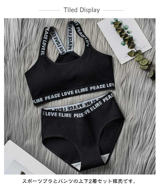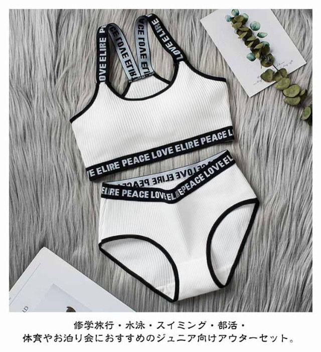 | 小学生高学年?中学生向け女の子用下着2着セット スポーツブラとパンツの上下2着セット販売です。 修学旅行・水泳・スイミング・部活・体育やお泊り会におすすめのジュニア向けアウターセット。 シンプルでおしゃれな人気の英字ロゴテープデザインがポイント。 伸縮性のあるノンストレスな着心地。 体にピッタリフィットして揺れないのでダンス衣装のインナーとしても大活躍! 見えてもかっこいい英字肩紐のスポブラなので、ブラジャーはまだ早いキッズのチューブトップやブラトップとしても安心して着用いただけます。 ファーストブラにおすすめ、パット入りなので安心。 新学期や新年に向けて新しい下着セットは色違いでも欲しくなっちゃう! | |