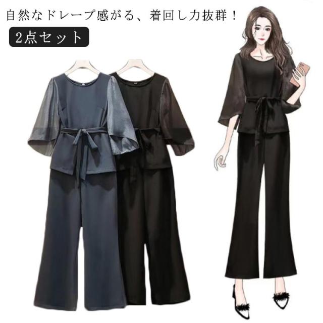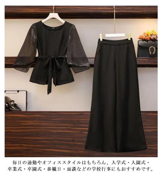 パンツスーツ きれいめ セットアップ 2点セット レディース フォーマル ママスーツ ワイドパンツ 結婚式 ブラックフォーマル 卒業式 スーツ 入学式 セレモニースーツ 黒 入園式 卒園式 母親 20代 30代 40代 L XL 2XL 3XL 4XL