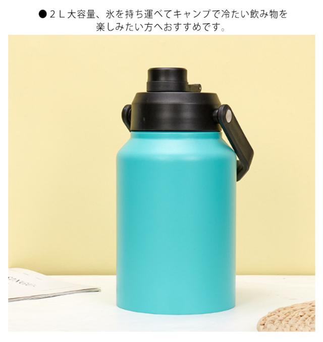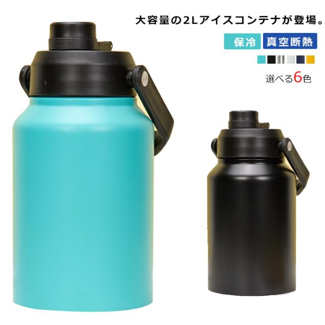 アイスコンテナ 2L 保冷 ウォータージャグ アイスペール キャンプ用 氷入れ 水筒 タンク 広口 大容量 氷 持ち運び 長時間 保冷 ステンレス 真空断熱 BBQ アウトドア 屋外 冷たい 飲み物 水 氷水 登山 運動会 花見 キャンプ用品 部活 防災 レジャー 保冷 プレゼント 実用的