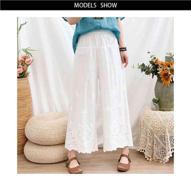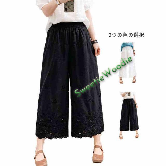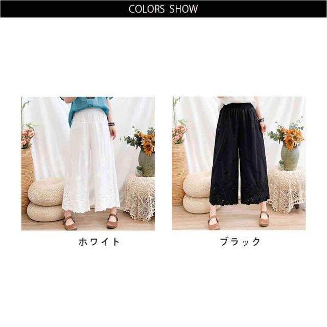 送料無料 ワンピに重ねる 裾パンツ ペチパンツ レディース パンツ コットン ワイドパンツ ペチコート ボトムス インナー レイヤード 重ね着 九分丈 綿 ロング マキシ 体型カバー ウエストゴム