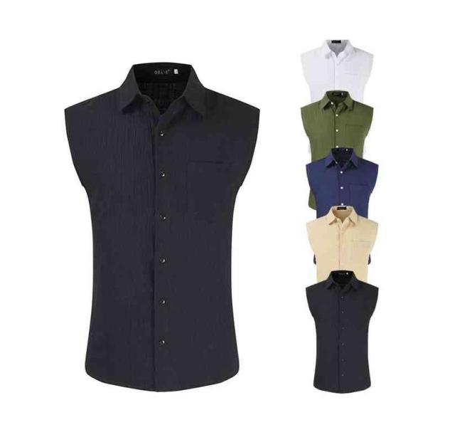 ベスト ノースリーブシャツ リネンシャツ 男性 夏服 涼しい シャツ ノースリーブ 綿麻 メンズ 前開き 襟付き カジュアルシャツ トップス レイヤード 涼しい ワイシャツ ビジネス 通気 フォーマル 無地 大きいサイズ リネン シャツ 送料無料