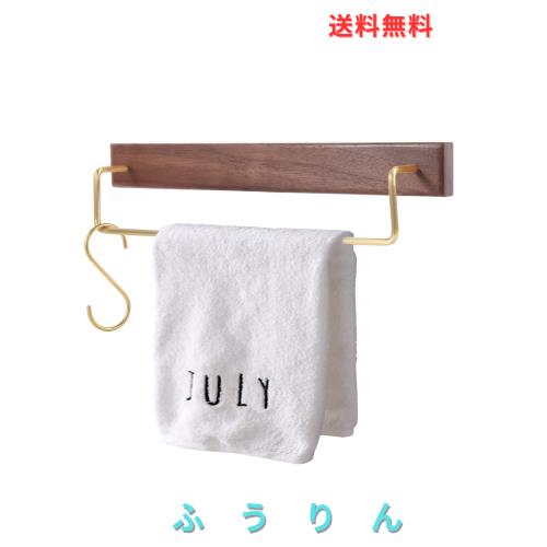 Sakulaya タオル掛け タオルバー タオルハンガー 天然木 真鍮 取付簡単 キッチン タオル掛け 洗面所 浴室 お風呂 収納 S字フック付き ク