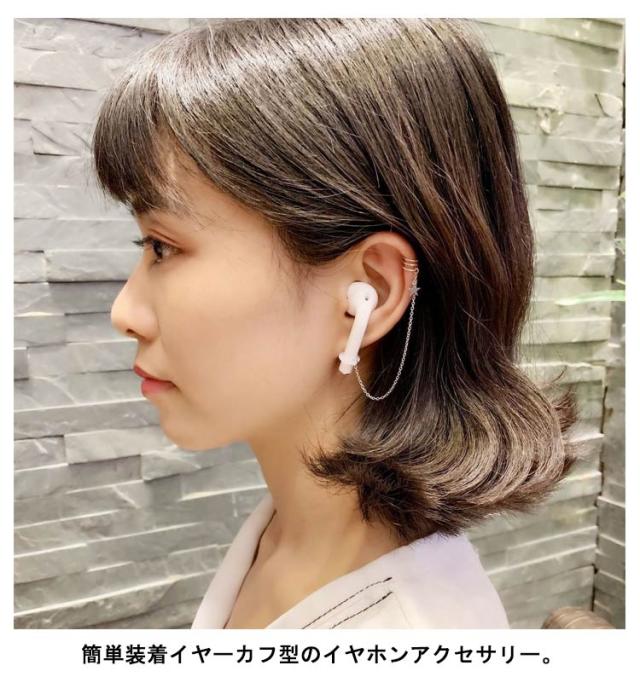 | 簡単装着イヤーカフ型のイヤホンアクセサリー。 ワイヤレスイヤホンの落下、紛失防止に! イヤリングをつけているようにおしゃれな雰囲気になります。 | |