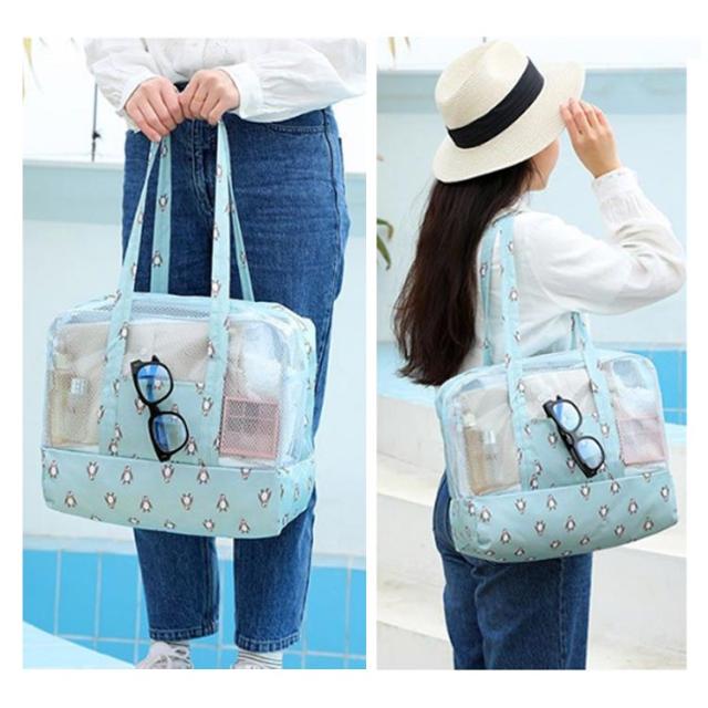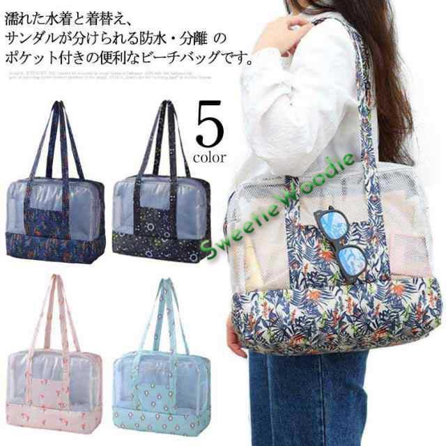 プールバッグ ビーチバッグ メッシュ 靴入れ 温泉バッグ 大容量 レディース メンズ 手提げバッグ 肩掛け 持ちやすい 軽い サマーバッグ スイミングバッグ 水着収納 水泳バッグ 全5柄