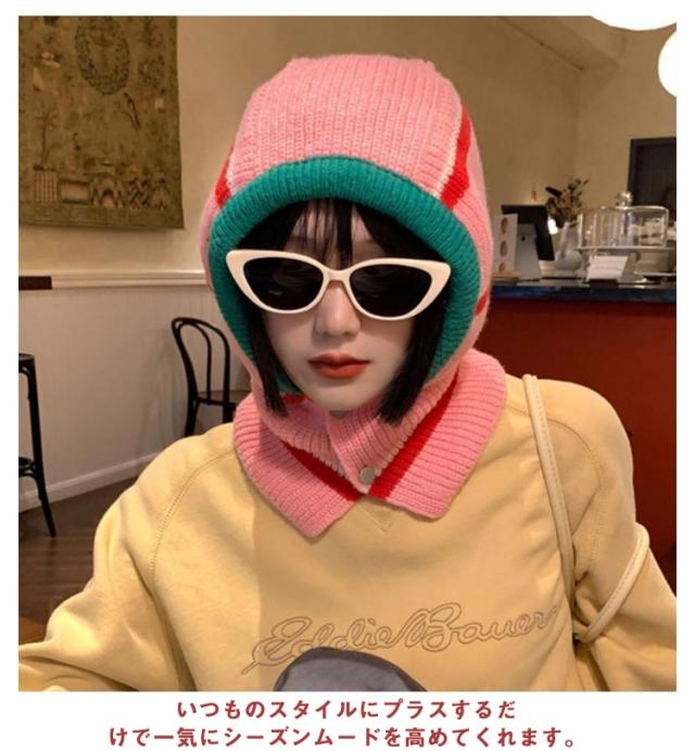 韓国風 バイカラー ニット帽 バラクラバ ニット バラクラバ 秋冬 あったか バラクラバ ネックウォーマー フードマフラー フード付き ネックウォーマー 防寒 おしゃれ フードウォーマー 秋冬 ニット 帽子 ニットキャップ 付けフード マフラー 帽子 防寒 暖かい 送料無料