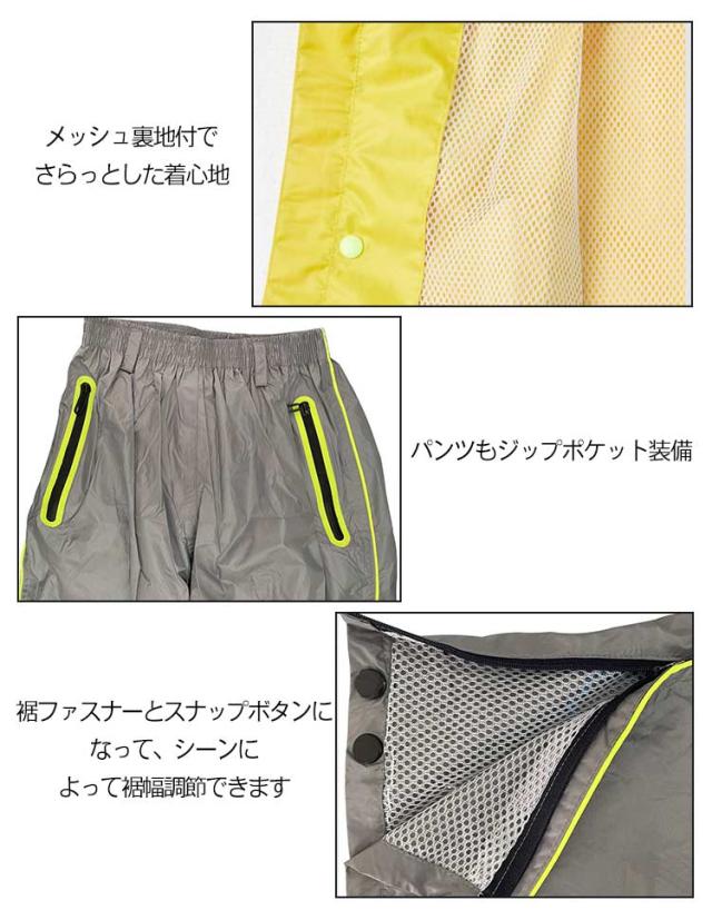 | 蒸れにくい、軽くて動きやすいインコート上下セット。 防水性能に優れるながら、内側の湿気を逃し、蒸れずに快適な着心地を実現。 上下ともメッシュ裏地付で、いつもサラサラ快適。 まるでスポーツウェアのように見えるおしゃれなデザインがステキ。通学・通勤はもちろん、山登りやお釣りなとアウトドアも大活躍。 | |