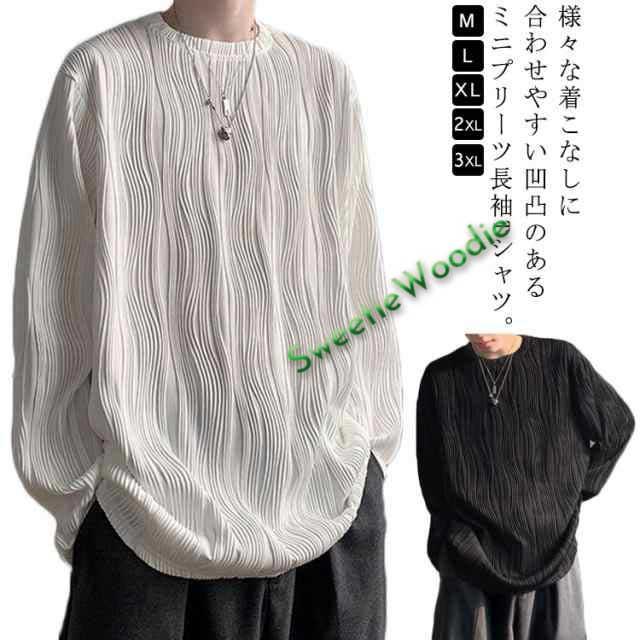 【送料無料】長袖 tシャツ メンズ カットソー ロングtシャツ 波模様 ストライプ クルーネック 丸首 オーバーサイズ ゆったり メンズ 春 夏 秋 トップス ストレッチ 大きいサイズ 無地 カジュアル ストリート おしゃれ