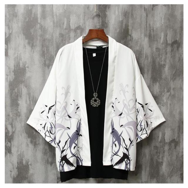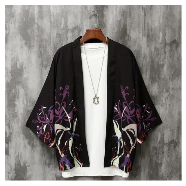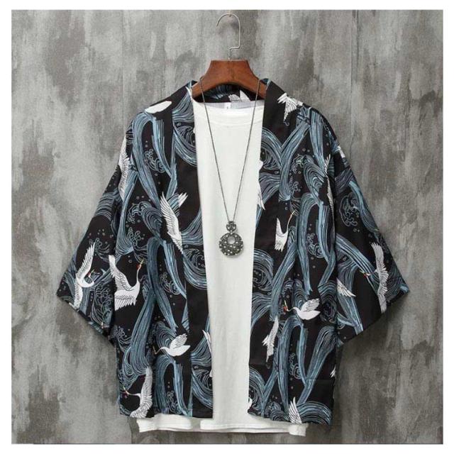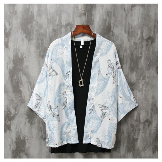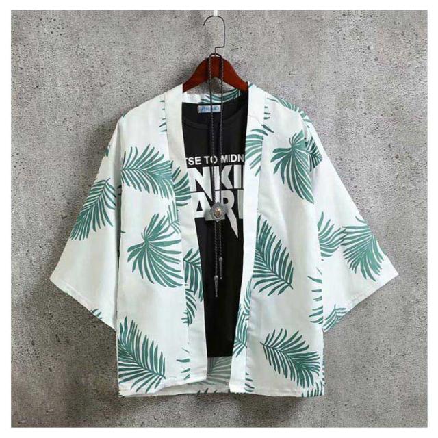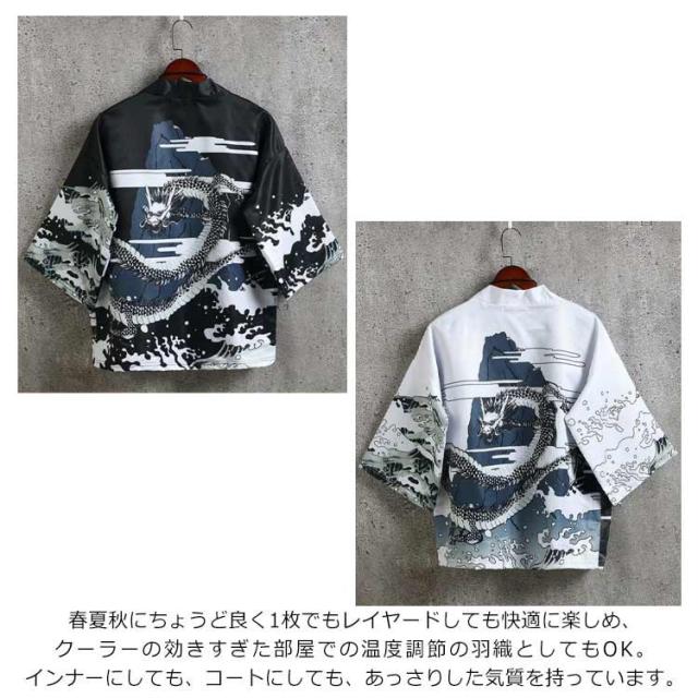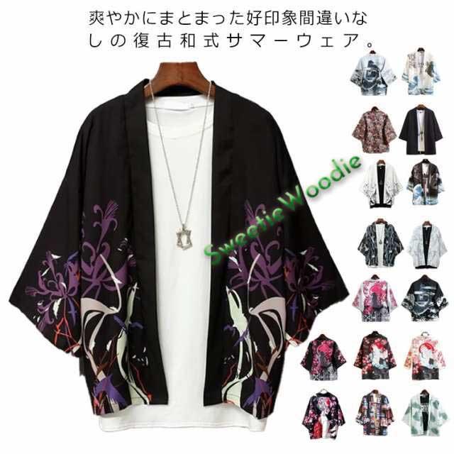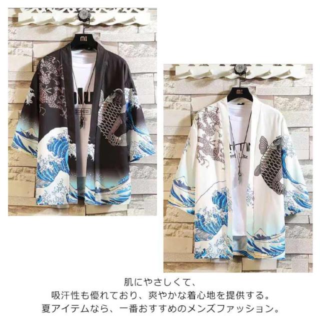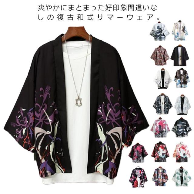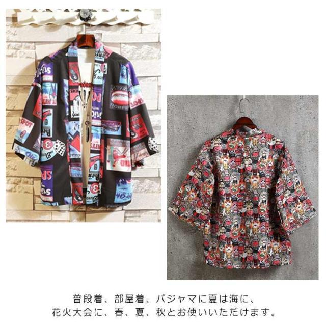 カーディガン メンズ 甚平 はおり 羽織り 作務衣 七分袖 シャツ 和式 柄付き 部屋着 ビッグシルエット 甚平風 浴衣風 夏服 着物 寝巻き 花火大会 春 夏 おしゃれ 敬老の日 父の日 誕生日