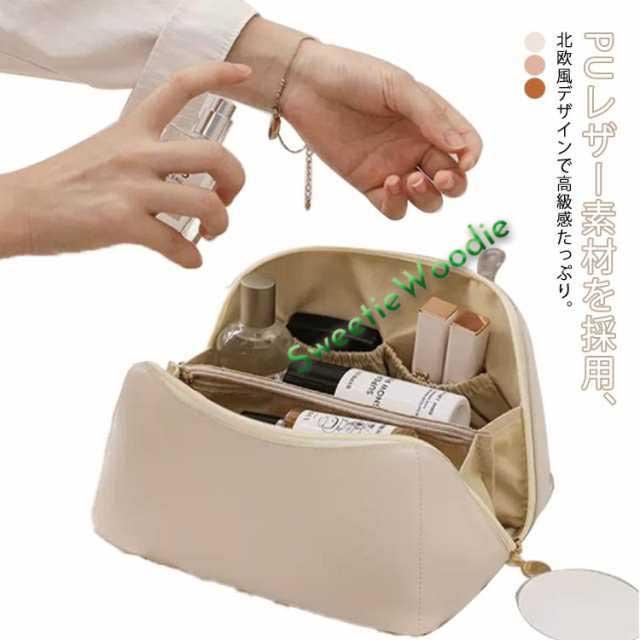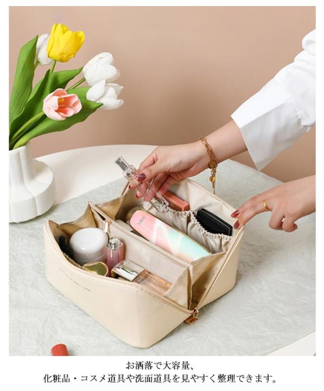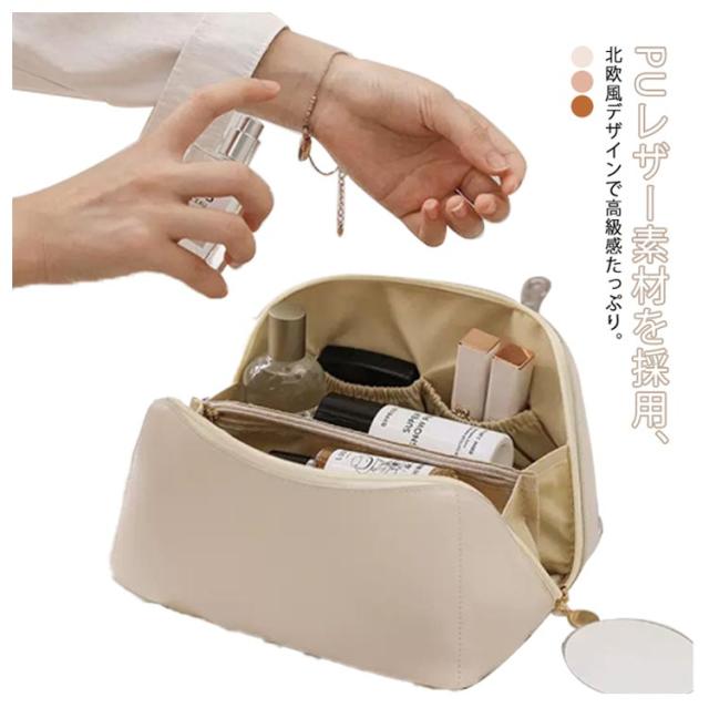 バニティケース 仕切り バニティバッグ ポーチ 小物入れ 大容量 化粧バッグ 化粧ポーチ PUレザー トラベルポーチ 機能的 メイクポーチ マルチポーチ 持ち運び 出張 旅行 コスメポーチ 化粧品収納 バッグ メイク道具収納 かわいい おしゃれ コンパクト マチあり 北欧風