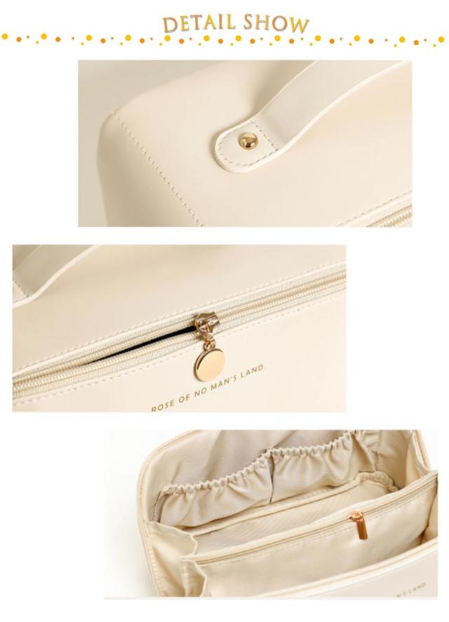| PUレザー素材を採用、北欧風デザインで高級感たっぷり。ファッション性と機能性兼ね備えるバニティケース。 お洒落で大容量、化粧品・コスメ道具や洗面道具を見やすく整理できます。 細かく仕切られていて、中身が散らからずにすっきり収納! 柔軟性に優れた生地感は軽い防水効果もあります。 程良い長さの持ち手が施され、持ち運ぶにもとても便利! 日常使いはもちろん、旅行や出張時も必ず大活躍のアイテム。 | |