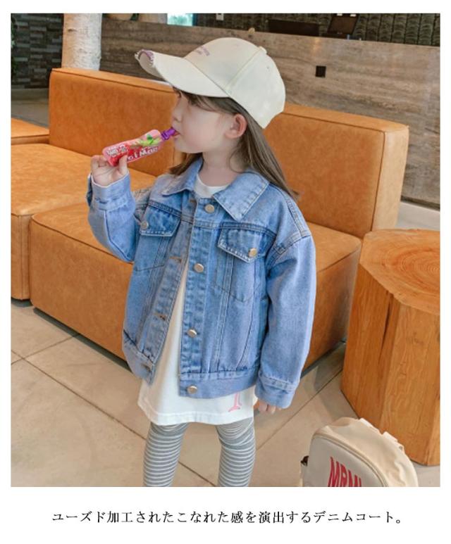 キッズ 女の子 デニムコート ジャケット 秋物 韓国子供服 ファッション ユーズド加工 ジージャン Gジャン ベビー服 ガールズ ブルゾン アウター おしゃれ 90 100 110 120 130 140 150 160cm ジュニア 送料無料