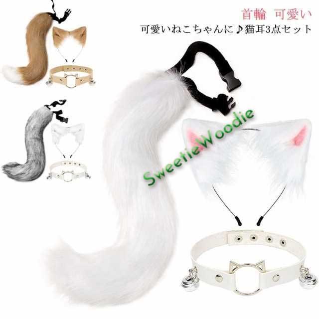 猫耳 3点セット コスプレ 首輪 首飾り ヘアピン しっぽ 大人用 子供用 カチューシャ チョーカー 衣装 仮装 セクシー ネコミミ ねこみみ ねこ耳 尻尾 にくきゅう ホワイト ブラック 白猫 黒猫 猫耳カチューシャ つけ耳 つけ尻尾 文化祭 学園祭 パーティー