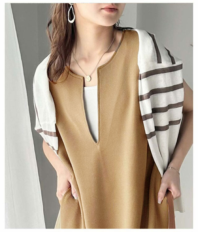 | 1枚できれいめに見えるキーネックロングジャンパースカート 深めのキーネックデザインで、お顔周りをスッキリみせ大人上品さを演出 サイドスリットで抜け感プラス ゆったりめのサイズ感で、Iラインシルエットが縦ラインを強調し女性らしさも演出 | |