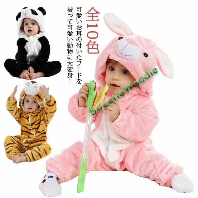 着ぐるみ 長袖 アニマル柄 ロンパース カバーオール 動物 フード付き 耳付き 防寒 前開き ジャンプスーツ ファスナー ファスナーガード付き 赤ちゃん ベビー服 春 秋 出産祝い 全11色