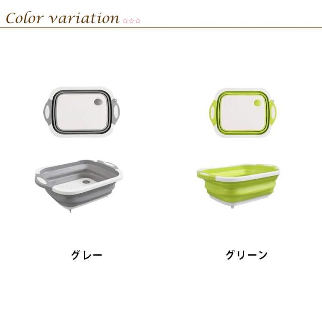 | 一人暮らしでも使えるサイズで洗い物も一気にできる折りたたみ排水バケツ シリコンとPPで出来ているので薄くて軽い!ラクラクお手入れで衛生的! 洗い物、野菜・果物を洗うときにとても楽な洗い桶になります 排水口付きで水切りや後片付けも楽々です 中の水を捨てるときもワンタッチでできるのでとても楽! まな板としてだけでなく、洗い桶も一緒になったアイテム キャンプやアウトドアでの食材の調理や、飲み物を冷やしたり、様々なシーンで活躍すること間違いなし! | |