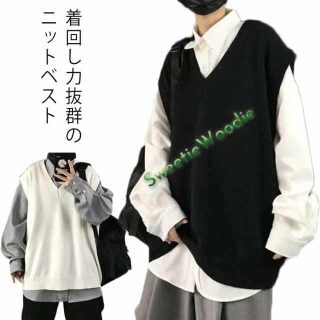 【送料無料】ニットベスト メンズ レディース レイヤード おしゃれ ゆったり 体型カバー 重ね着 オーバーサイズ 大きめ きれいめ カジュアル モード 韓国ファッション シンプル 無地 男女兼用 秋冬 カジュアル Vネック 通勤 通学