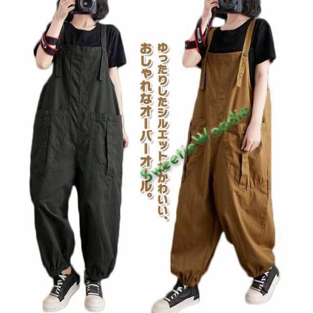 サロペット 大きいサイズ オーバーオール オールインワン チノパン パンツ 作業ズボン ビッグシルエット ボトムス ワイドパンツ 絞り裾 ワークパンツ つなぎ 送料無料 無地 作業着 仕事着 作業服 薄手 マタニティ 体型カバー 楽ちん ポケット付き
