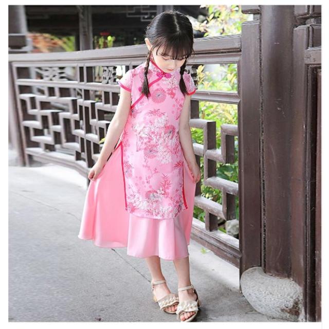 チャイナドレス 子供 キッズ チャイナドレス ロング チャイナ服 ワンピース 子供ドレス 女の子 花柄 子供服 パーティードレス 半袖 夏 漢服 中華風 春秋 キッズドレス ハロウィン 卒業式 発表会 結婚式 可愛い 110 120 130 140 150 160 送料無料