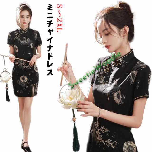 送料無料 チャイナドレス 半袖 中華風 ワンピース 演出 中華楽器 パーティー ドレス 女性用 ミニチャイナドレス ショート丈 チャイナ服 セクシー 中華ドレス 華流コスチューム タイト 膝丈 ハロウィン パーティー チャイナ舞台衣装 ブラック
