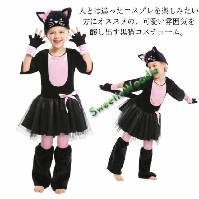 ハロウィン 衣装 子供 黒猫 コスプレ 女の子 可愛い ネコ耳 帽子 手袋 しっぽ ネコ コスチューム 仮装 セット イベント クリスマス 文化祭 発表会 舞台 演出服?100 110 120 130 140 150 送料無料