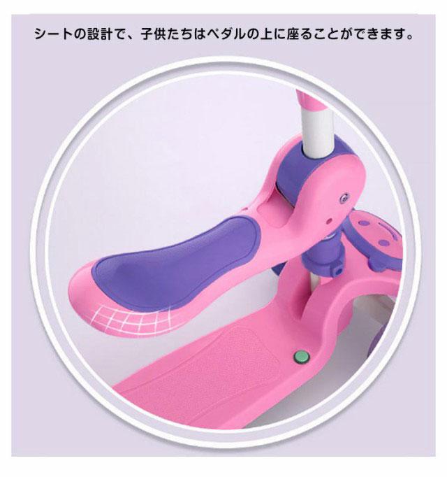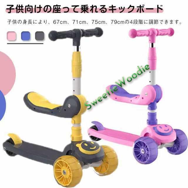 | 子供向けの座って乗れるキックボード 子供の身長により、67cm、71cm、75cm、79cmの4段階に調節できます。 走るときにピカピカ光るホイールを使用し、夜間でも目立つから万が一のときも目に入りやすくなっています。 後輪についているフットブレーキを片足で軽く踏むことで、スピードを簡単に調節でき、安全性とオシャレを両方も実現します。 ハンドルは人間工学に基づいた、T字型バーグリップがあるので、しっかりとした快適性と耐性があります、リーンステア機能付きで、体重をかける向きによって左右方向を変えられ、バランス感覚と運動神経を促進します。 場所を取らなくてコンパクトなので、玄関などの室内保管や車のトランクに置いても問題ないです。 シートの設計で、子供たちはペダルの上に座ることができます。 | |