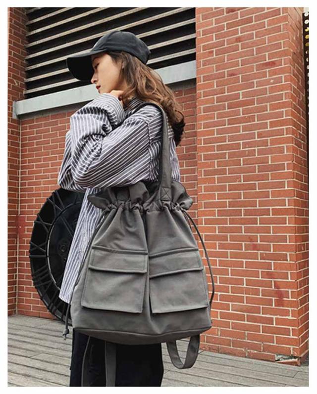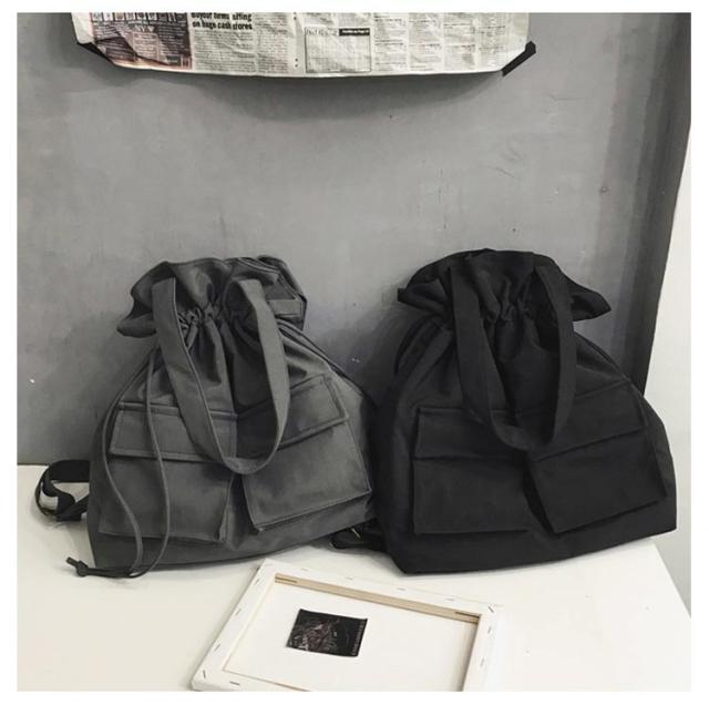 | 実用性とデザイン性を兼ねそろえた2WAYリュックサック。 リュックとして背負うだけでなく、トートバッグとして。スタイルや好みに合わて持ち方を変えられます。 入り口が大きく開くため、中の荷物の出し入れがスムーズ。 紐を絞れば巾着の様にシルエットが変えられるデザイン性の高さもポイント。 大容量の収納とシンプルな作りなので、カジュアルすぎない大人のバッグとしてご使用いただけます。 男女問わず使えるシンプルなデザイン。プライベートはもちろんビジネスシーンにも最適。 | |