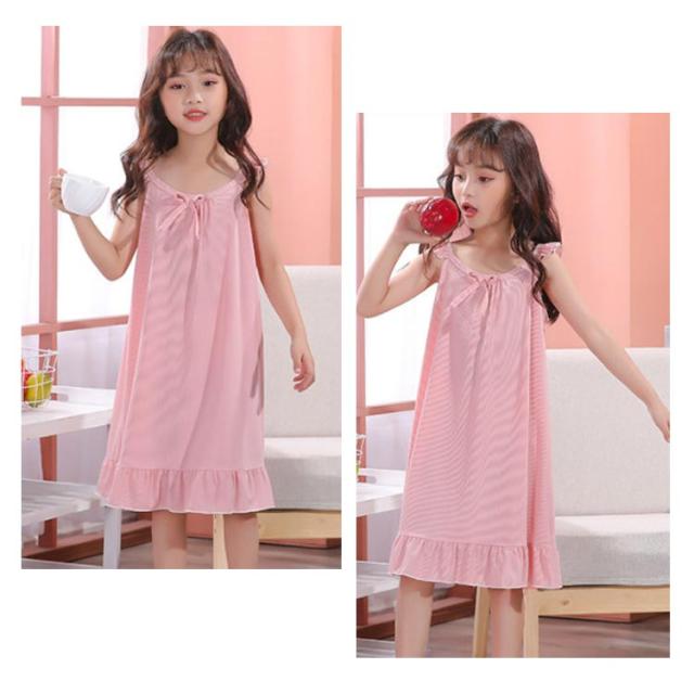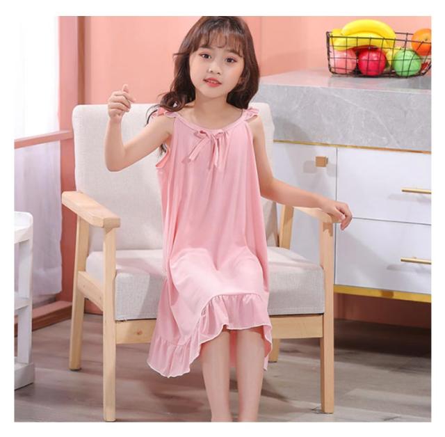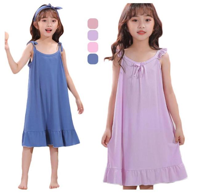 パジャマ キッズ 女の子 ノースリーブ 子供パジャマ ルームウェア ワンピース 夏 ワンピース 女の子 部屋着 かわいい ゆったり おしゃれ 可愛い 寝巻き 送料無料 無地 リボン フレアワンピ ロングワンピース