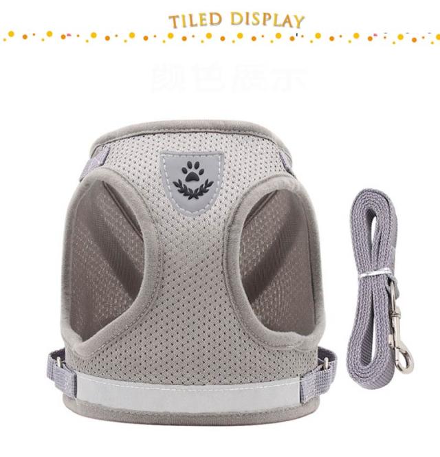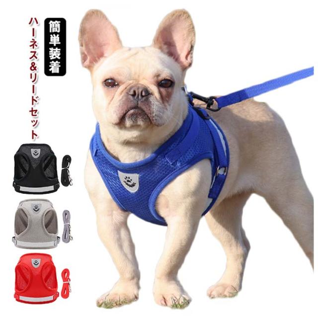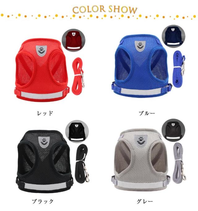 | ハーネス&リードセット 首がラクラク、苦しくない♪ 通気性抜群のメッシュ素材 反射テープ付き | |