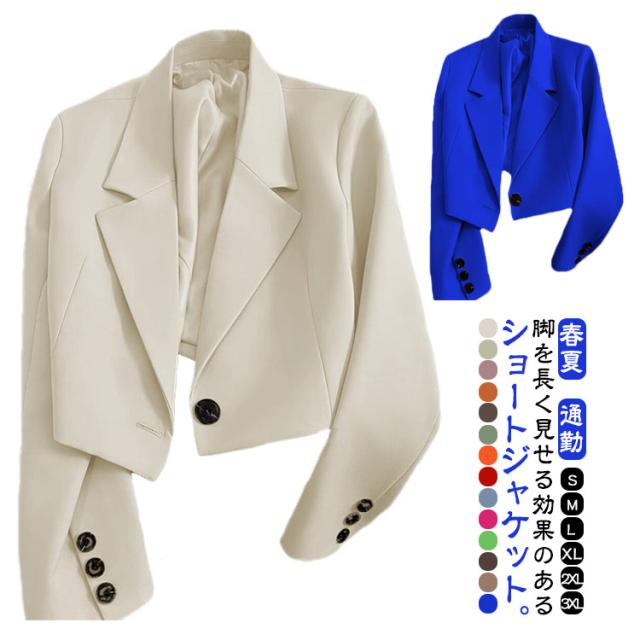 通勤 春夏 ジャケット カジュアル ショート丈 短め レディース オフィス ショートジャケット テーラードジャケット アウター オフィスカジュアル 送料無料 ワンボタン ジャケット クロップド丈テーラードジャケット