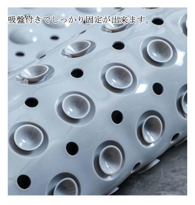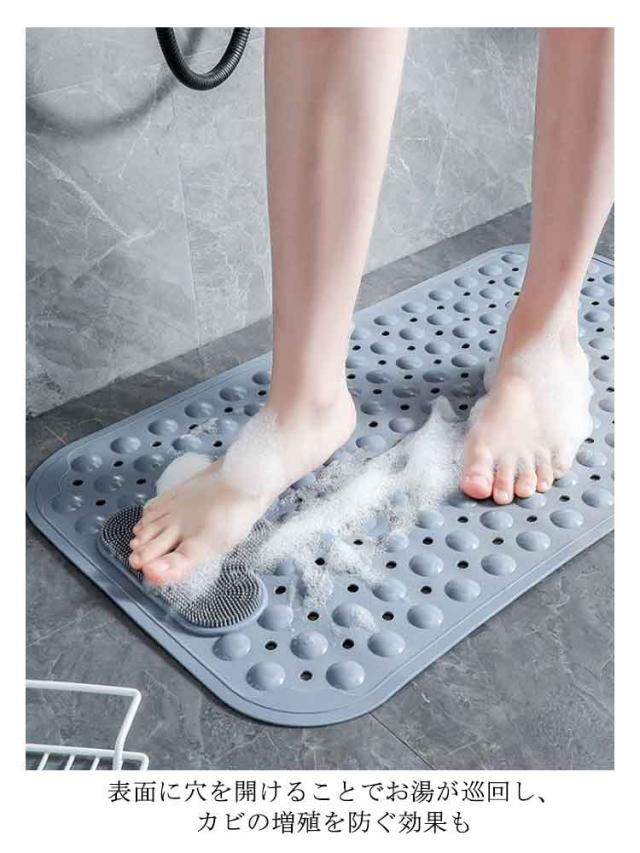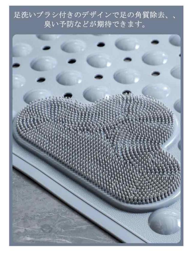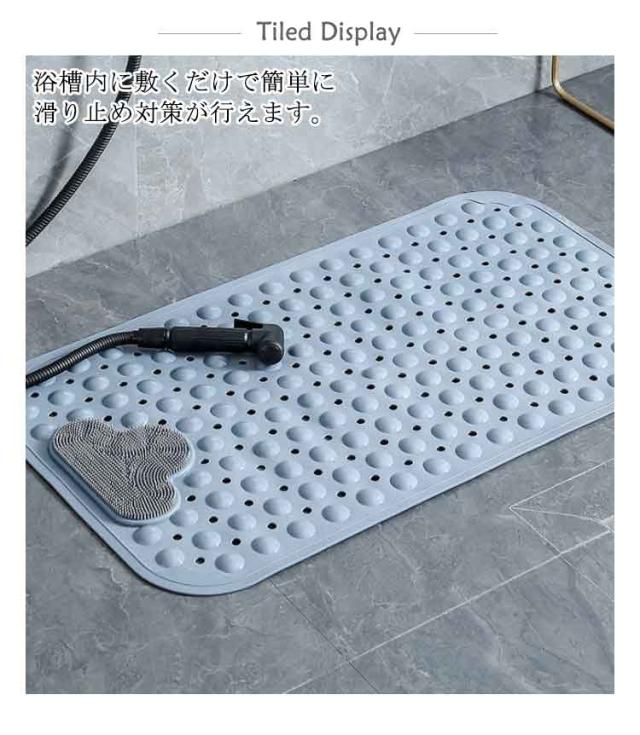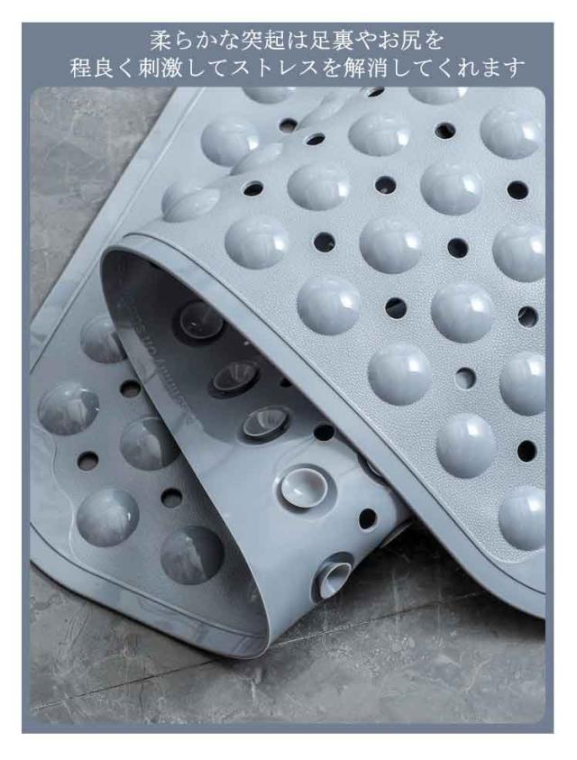 | 吸盤でしっかり固定! 子どもや、妊婦さん、お年寄りのお風呂での転倒防止に! 浴槽内に敷くだけで簡単に滑り止め対策が行えます。 柔らかな突起は足裏やお尻を程良く刺激してストレスを解消してくれます 吸盤付きでしっかり固定が出来ます。 足洗いブラシ付きのデザインで足の角質除去、、臭い予防などが期待できます。 表面に穴を開けることでお湯が巡回し、カビの増殖を防ぐ効果も 介護、ご高齢の方、妊婦さん、小さなお子様の入浴を安心・安全・快適にサポートします | |