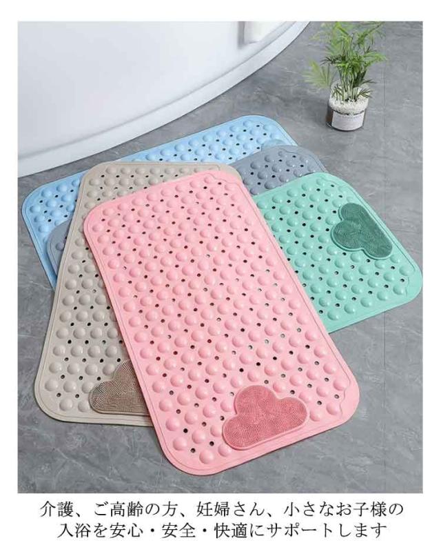 お風呂マット 浴槽マット バスマット 滑り止めマット ブラシ付き すべり止めマット 風呂 転倒防止 70×40cm 吸盤付き シャワーチェア 風呂椅子 浴室マット 吸着 浴室 バスルーム かわいい PVC バスタブ 介護用品 入浴用品 突起 足つぼ お年寄り 子供 妊婦 高齢
