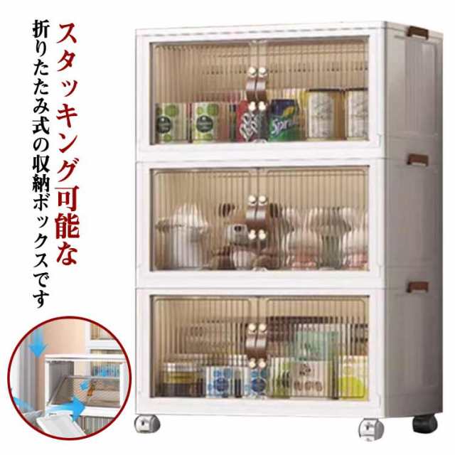 折りたたみ 幅57cm 中身が見える 収納ボックス キャスター付き 折りたたみ 前開き 収納ケース ワンタッチ 大容量 3段 積み重ね 透明 収納箱 衣類 小物