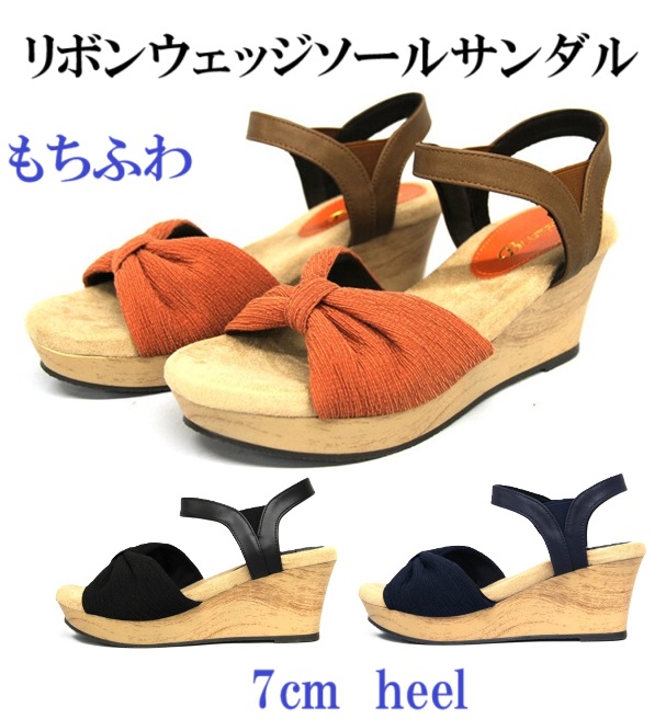 もちふわ♪リボンウェッジソールサンダル