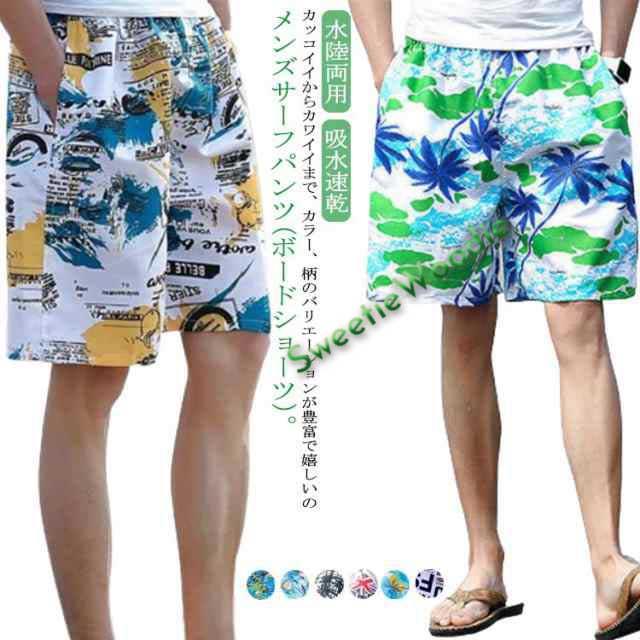 ハワイ風 メンズ サーフショーツ ハーフパンツ ひざ丈 ボードショーツ インナー 水着 サーフパンツ ラッシュガード 海パン 大きいサイズ ロング 膝丈 海水浴 プール 海 おしゃれ サーフィン サウナ 耐塩素 水陸両用 吸水速乾 ミドル