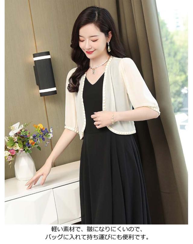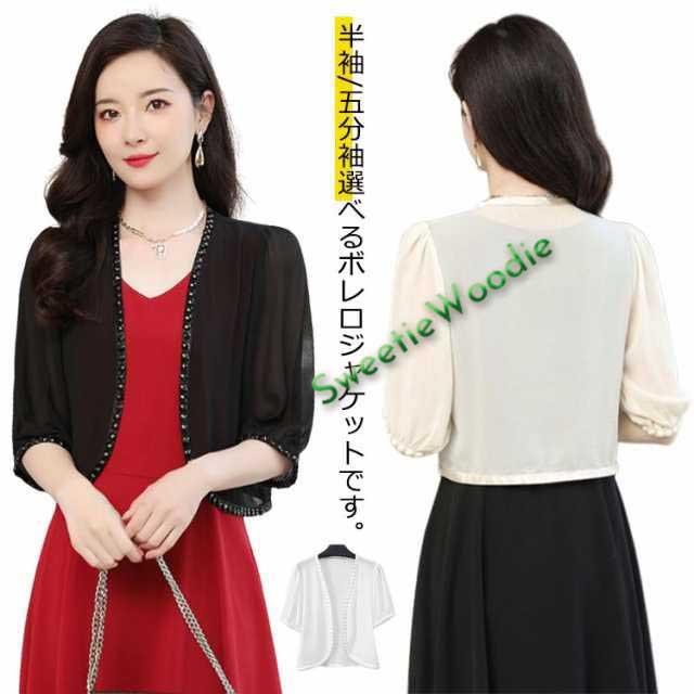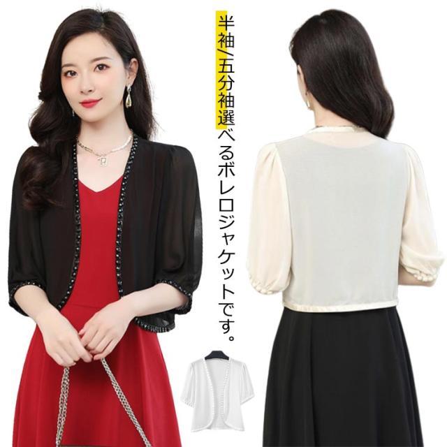 半袖/五分袖選べる ショートカーディガン 結婚式 シフォン ジャケット お呼ばれボレロ フォーマル 送料無料 大きいサイズ ボレロ 発表会 夏 きれいめ キレイめ 上品 パーティーボレロ 春 結婚式 披露宴 二次会 袖あり
