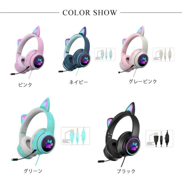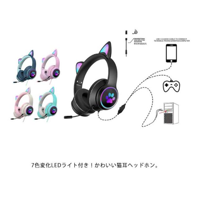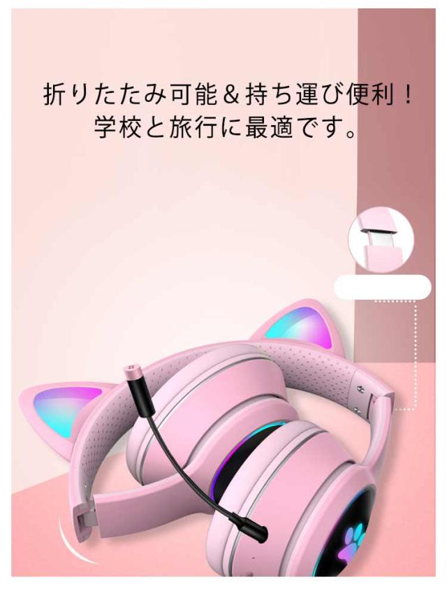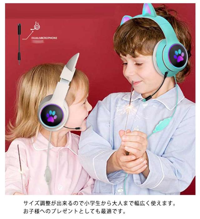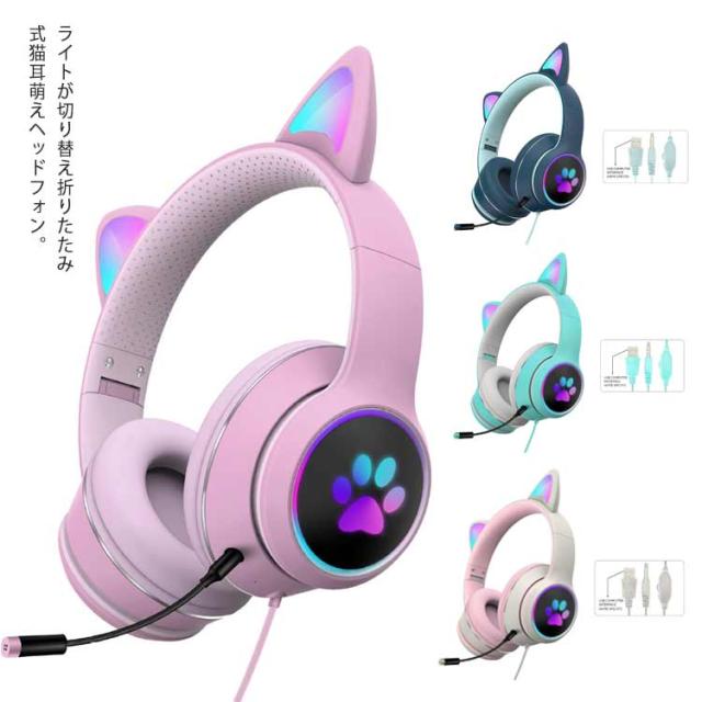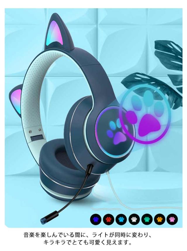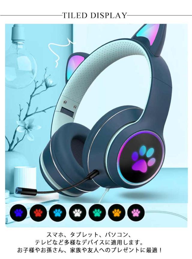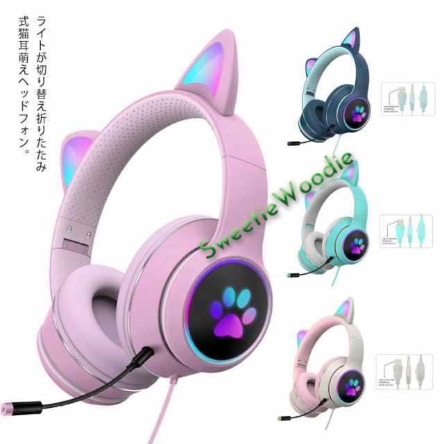 ヘッドホン ヘッドフォン 猫耳 ヘッドセット PC 高音質 3.5mm ステレオ 有線 LEDライト付き ネコ耳 かわいい ゲーミング 折りたたみ 持ち運び 軽量 柔らかい サイズ調節可能 子供用 大人用 通話可能 プレゼント 知育 学習 音楽 語学勉強