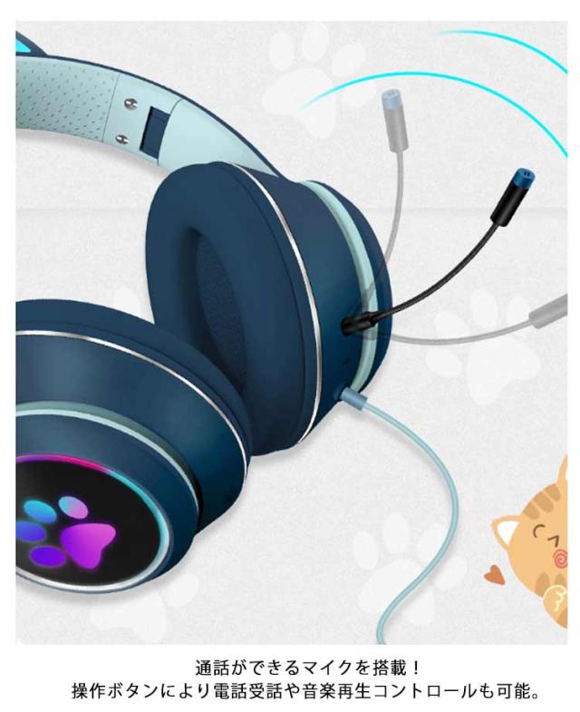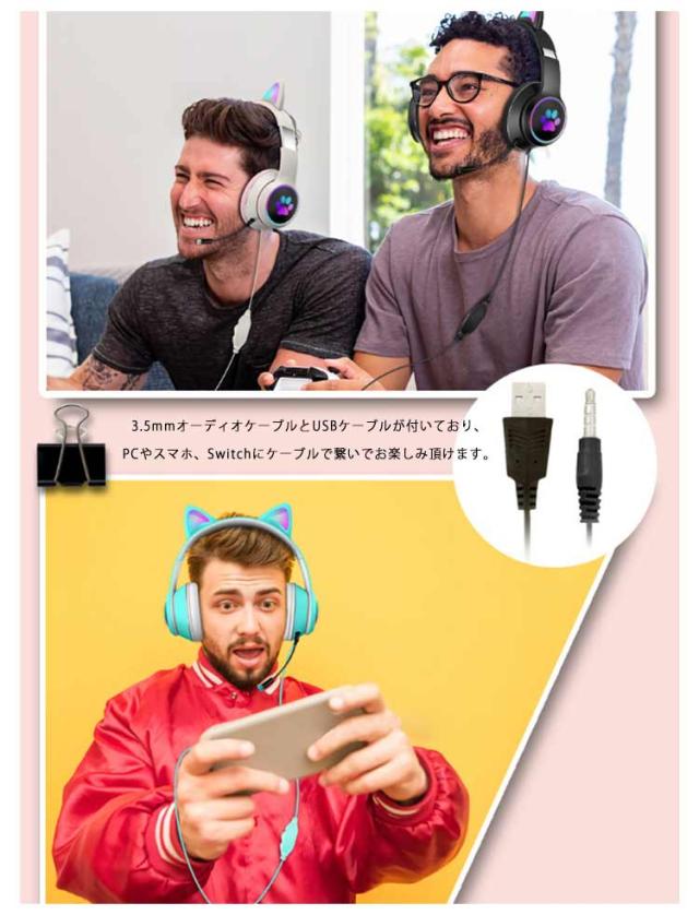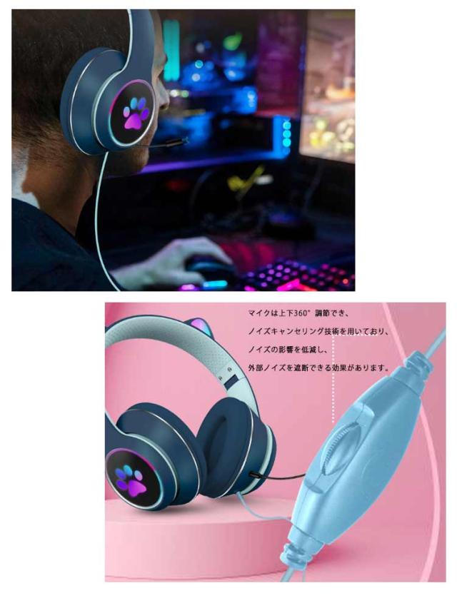 | 7色変化LEDライト付き!かわいい猫耳ヘッドホン。 マイクは上下360°調節でき、ノイズキャンセリング技術を用いており、ノイズの影響を低減し、外部ノイズを遮断できる効果があります。 スマホ、タブレット、パソコン、テレビなど多様なデバイスに適用します。 お子様やお孫さん、家族や友人へのプレゼントに最適! | |