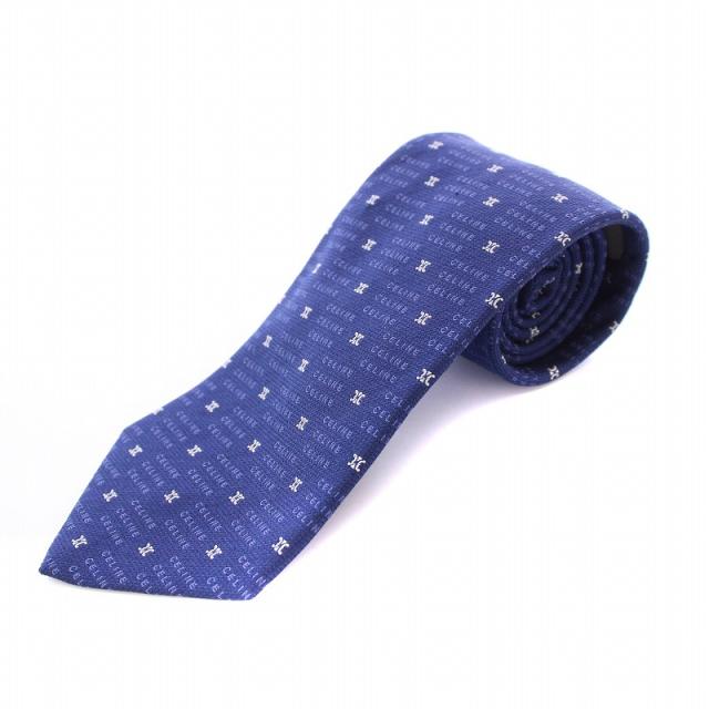 【中古】セリーヌ CELINE ネクタイ レギュラータイ シルク ロゴ トリオンフ柄 総柄 紺 ネイビー