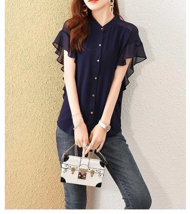 | ふんわり可憐な印象のフリル袖が大人可愛い。 何にでも合わせやすいシンプルデザインのシフォンブラウスです♪ 柔らて通気性の優れた素材で着心地が快適! ボトムはデニムやスカート、スラックス等とも合わせやすいです。 普段着としてだけでなく、オフィスコーデなどのフォーマルなシーンなどにも使える。 | |