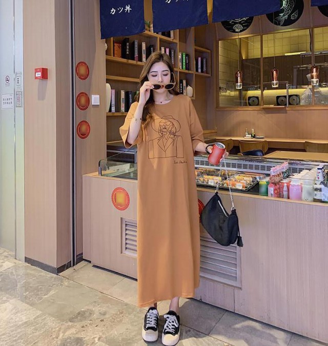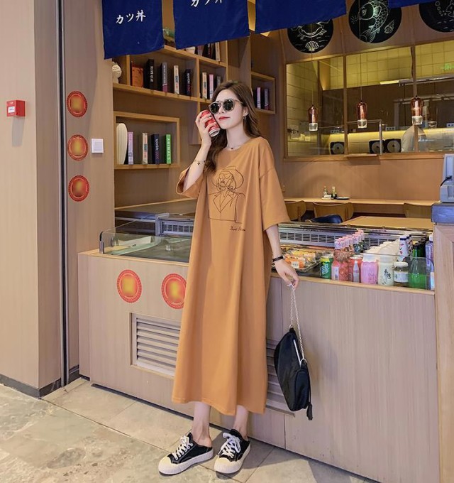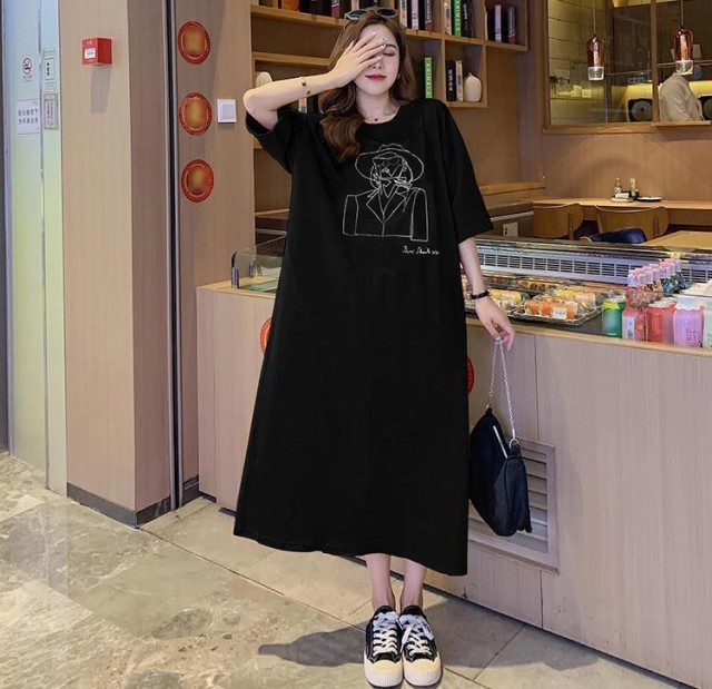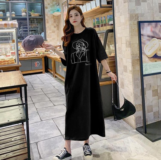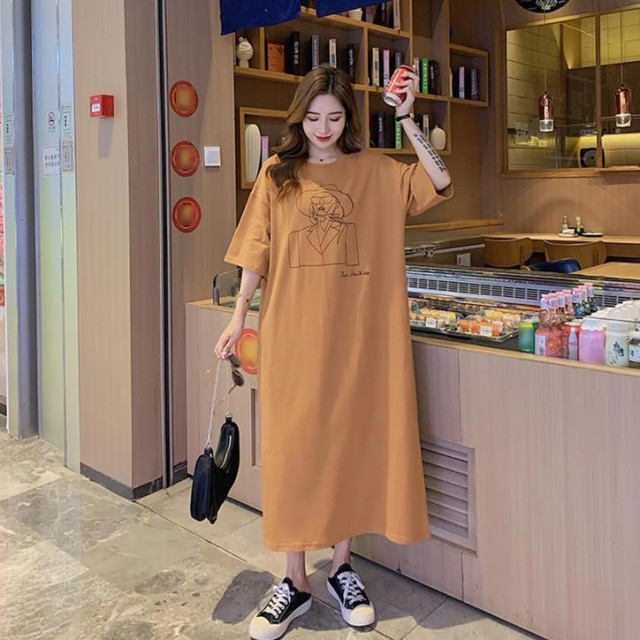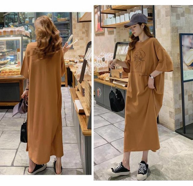 送料無料 ロングワンピース レディース Tシャツ ワンピース 半袖 トップス 夏服 マタニティウェア ロング丈 カットソー ゆったり 部屋着 柔らか ストレート 大きいサイズ