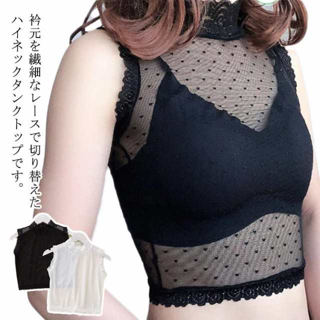 ニット ニット ハイネック 衿レース切替ハイネックタンクトップ ノースリーブ レディース タンクトップ シースルー シースルー おしゃれ レース オフィス 衿レース切替ハイネックタンクトップ 薄手 サマー 無地 重ね着 レイヤード インナー トップス