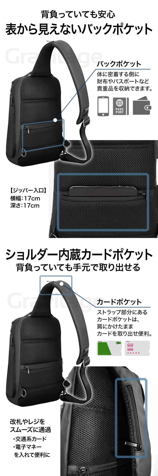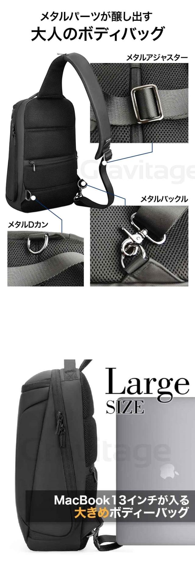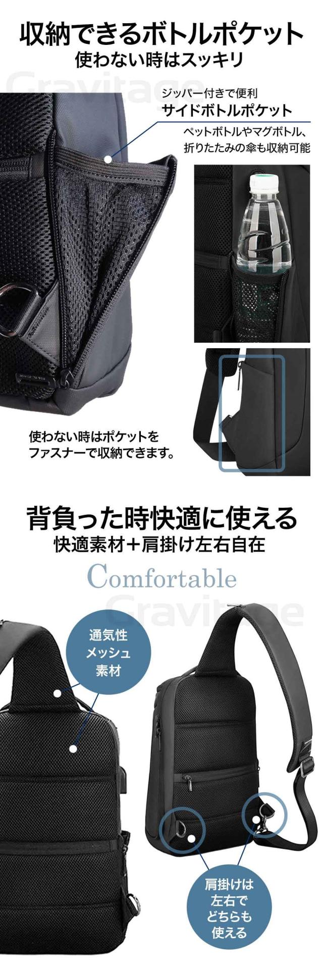ボディーバッグ 5ポケット 大容量 防水 撥水 PC パソコン ボトル ポケット ショルダーバック スリングバッグ ワンショルダー リュック バレンタイン プレゼント